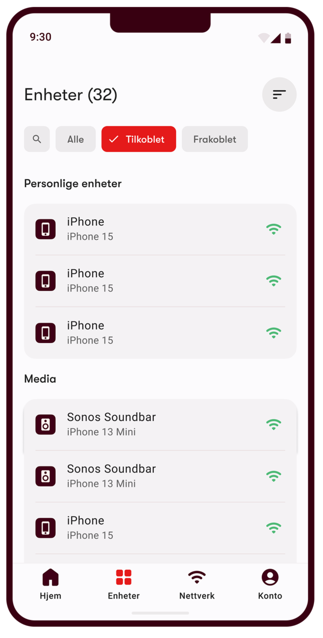 – I Altibox Hjem-appen får du full oversikt over hvilke enheter som er koblet til, og du kan enkelt fjerne dem som ikke lenger skal ha tilgang. Med noen få trykk kan du blokkere enkeltenheter – uten å måtte bytte passord og koble opp alle enheter på nytt, sier Mattis.