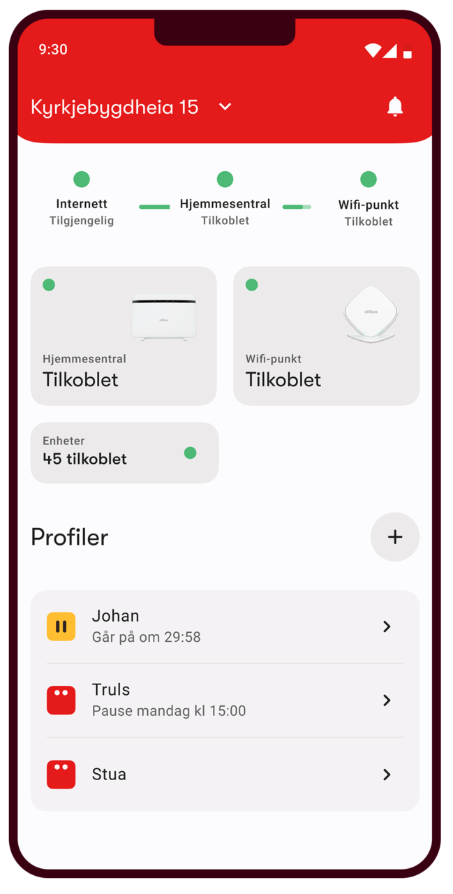 Samtidig gir appen bedre innsikt i hvordan wifi-nettet faktisk fungerer i huset. For kunder med Altibox Wifi Overalt vises status på de ulike wifi-punktene, slik at du lettere kan se om plasseringen gir ønsket dekning.